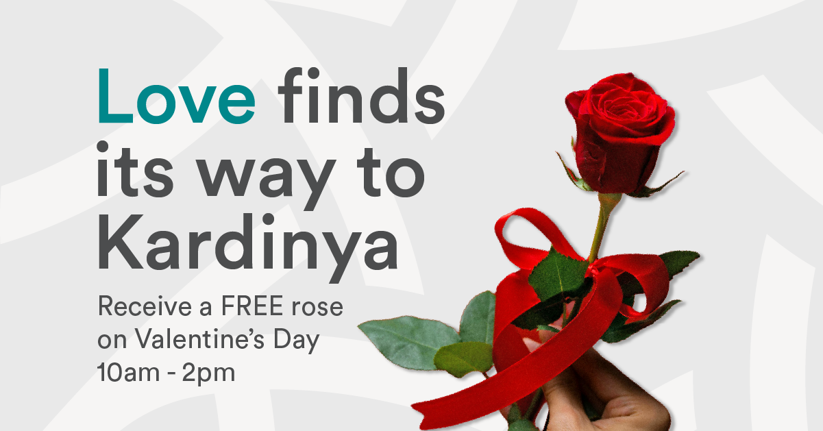 Love is in the air at Kardinya Park Shopping Centre on Saturday 14 February from 10am–2pm, with complimentary roses being handed out as you shop.